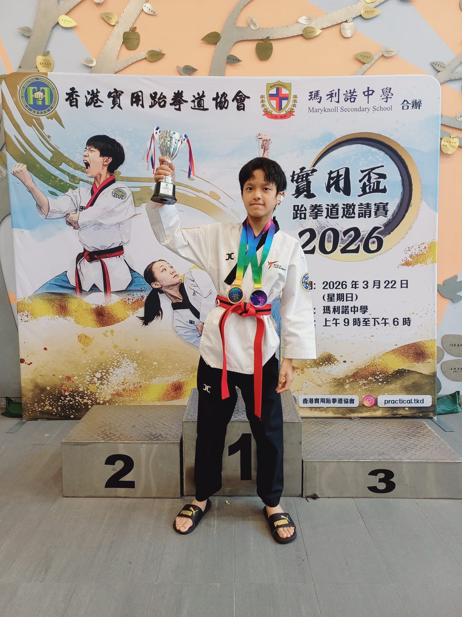 獎項: 其他 組織: 大埔體育會專業品勢 冠軍 雙人品勢(蔡家耀,林綺瞳)冠軍 個人品勢太極七章 亞軍 共奪2冠1亞 年度: 2025-2026 班級: P6 學生姓名: 林綺曈